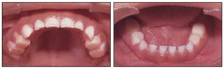 然而,即使到了 2021 年年中,他還是老樣子——睡覺時張口呼吸、睡得不安穩。更糟的是,他的牙弓依然很窄,乳牙之間沒有出現應有的縫隙,所以可以想見,再這樣下去,他的恆牙將來一定長得歪七扭八。