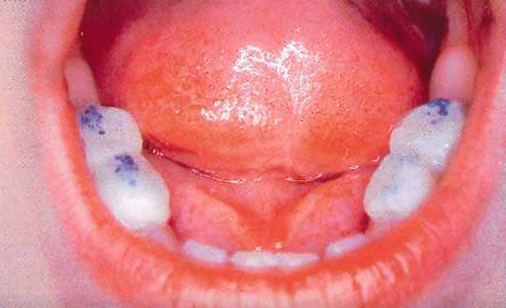 簡單來說,就是在幾顆乳牙上加高一層平坦的樹脂墊,把咬合高度墊高。等到恆牙長出來時,就會順著這個新的高度萌發出來。據這位牙醫說,他在孩子身上做這種處理已經很多年了(至少一、二十年跑不掉)