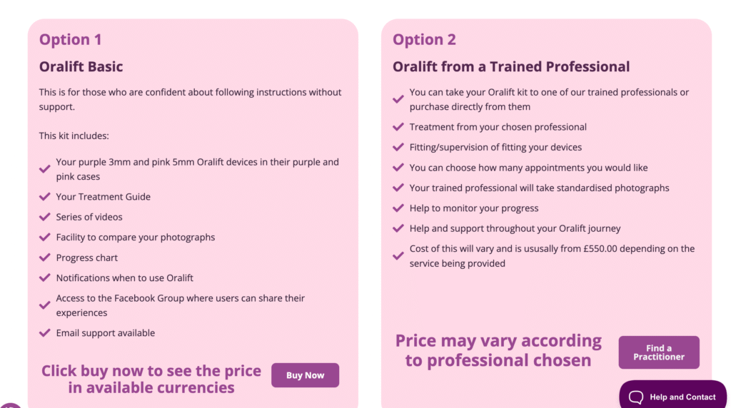 Oralift 的商業模式很靈活,用戶可以選擇自行 DIY 使用,或者在他們所謂「受過訓練的專業人員」指導下進行。他們稱這些受訓人員為「美容師」(aesthetician),而成為 Oralift 認可的美容師基本上只有一個條件——參加並通過他們收費的訓練課程,完全不需要任何醫學或牙醫的學位背景。如果你選擇 DIY 自己來,他們也提供許多額外的支援服務讓你按照需求購買。